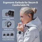 These wireless earbuds deliver amazing bass and crisp stereo sound—perfect for workouts and daily use! The wireless charging case (sold separately) is super convenient, and the 48-hour total playtime means no constant recharging. Love the LED battery display and secure earhooks for running. Quick charging gives an hour of play in just 10 minutes! Comfortable fit, great mic for calls, and waterproof design make these a steal for the price.