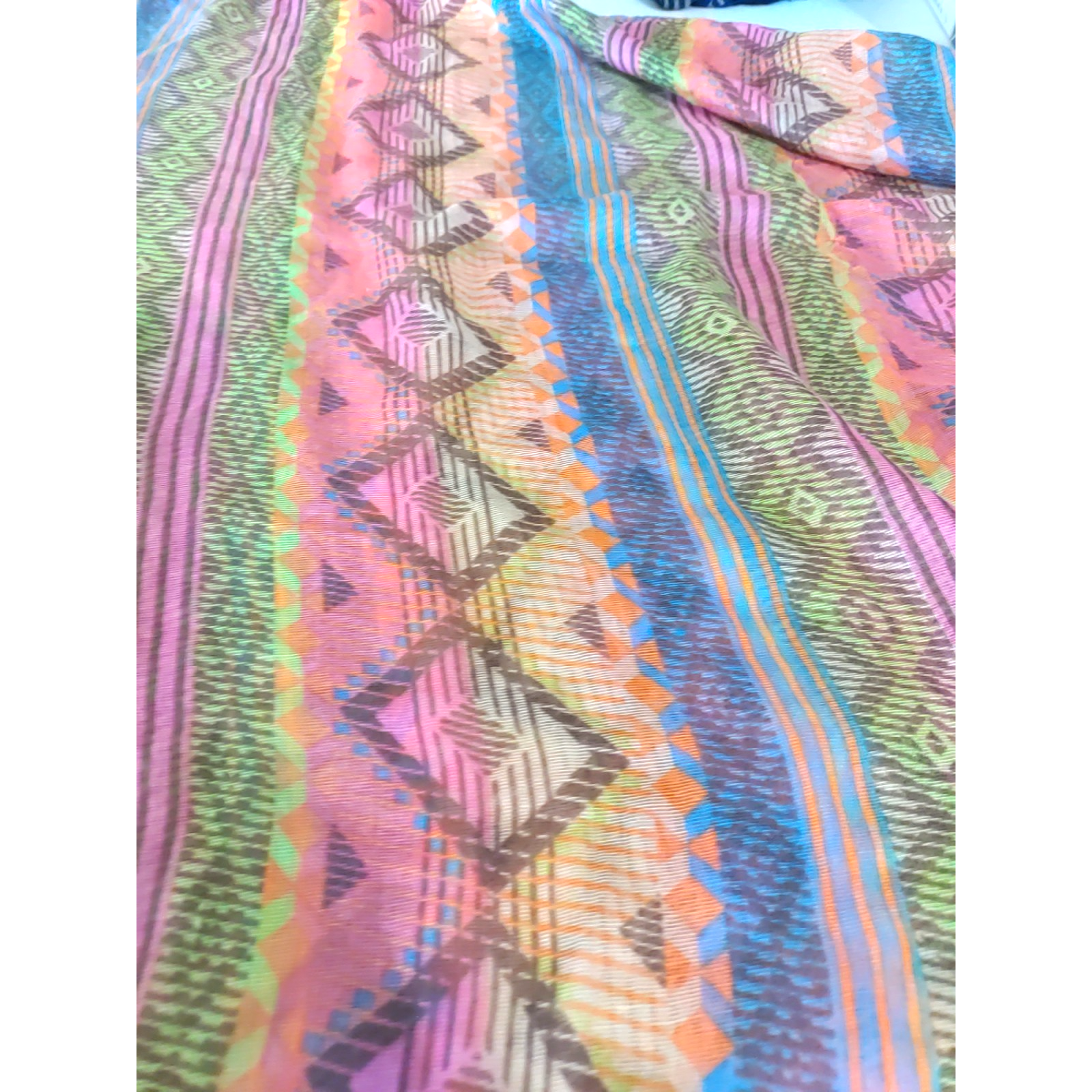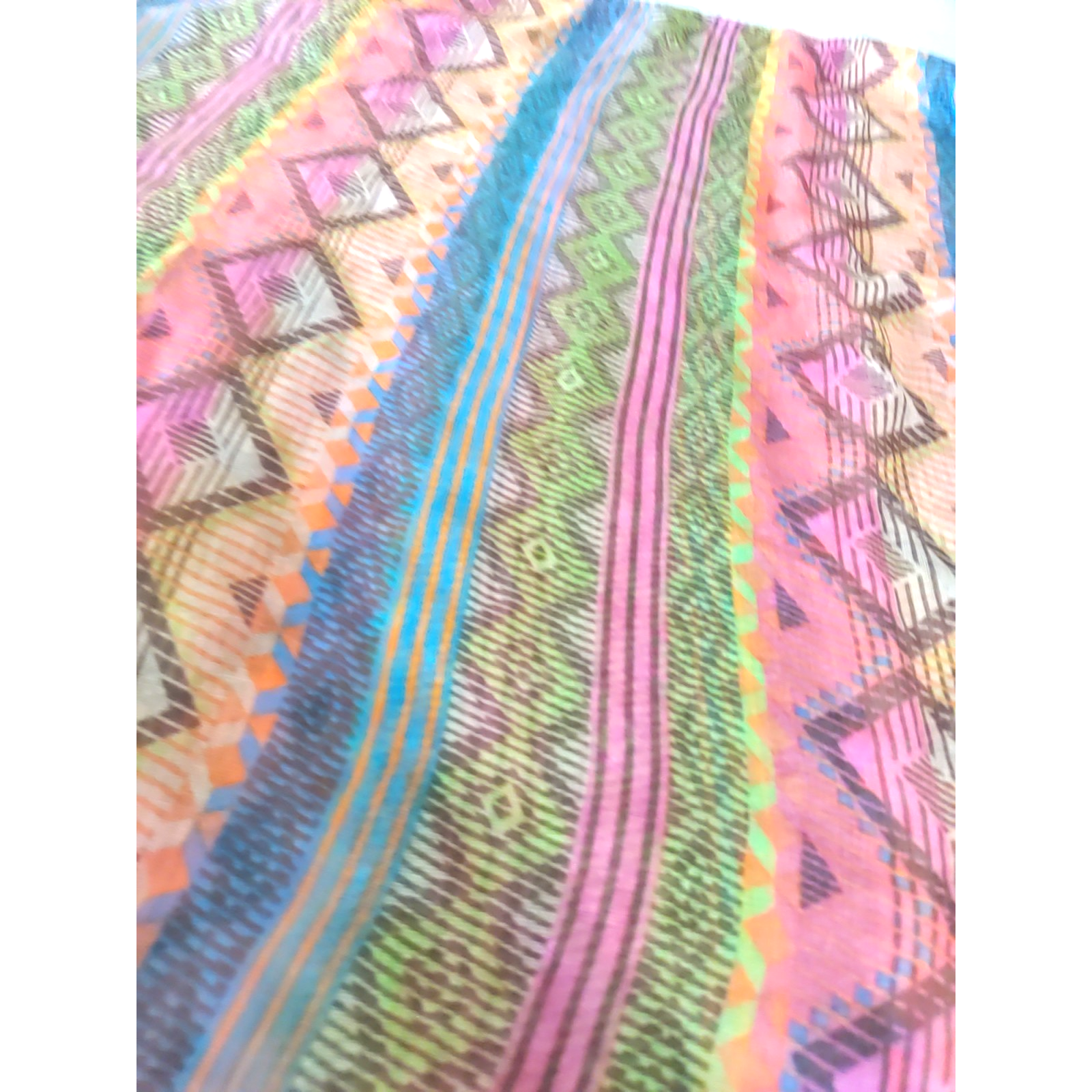 No material tags Infinity Scarf Orange Blue Aztec Design 68" X 23 Sheer Lightweight
