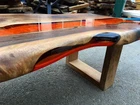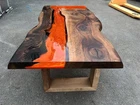 Orange Epoxy LIve Egde Table Top, Epoxy Dining Table, Walnut Wood Epoxy Table