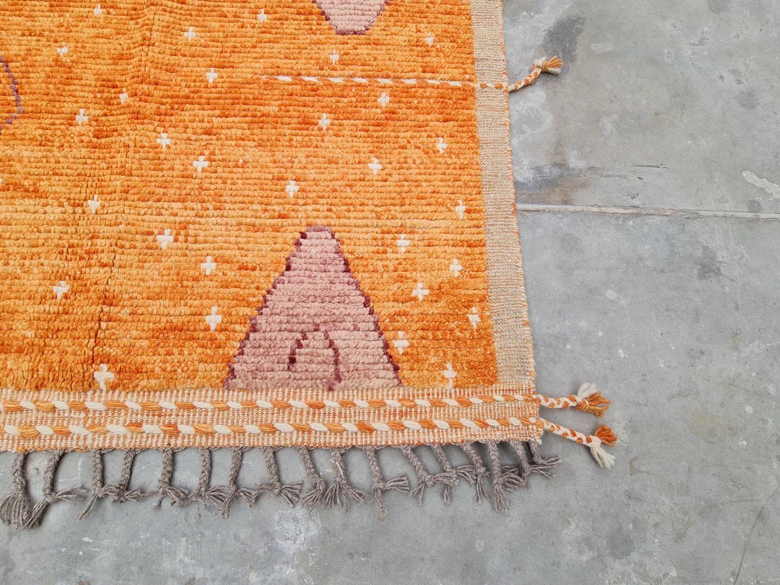 $ 62.94Hand Knotted Orange Moroccan Wool Rug: Tribal Diamond Berber Carpet