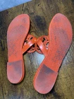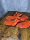 Tory Burch Miller Flip Flop Sandals Bright Samba Orange Sz 8 Leather Condition: Pre-owned Upper straps are in great condition. Inner soles show significant wear and visible marks from normal use. The Tory Burch Miller Flip Flop Sandals in Bright Samba Orange are a stylish designer staple, featuring the signature embroidered logo medallion. Crafted from leather with a breathable insole and supportive flat sole, these sandals are comfortable and easy to wear with a pull-on design. The vibrant orange color makes them perfect for summer, travel, and casual outings. Details: • Brand: Tory Burch • Style: Miller Flip Flop Sandals • Size: Women’s 8 • Color: Bright Samba Orange • Material: Leather upper • Heel height: Flat / low heel • Features: Logo medallion, slip-on style, breathable footbed • Occasion: Casual, travel, summer, resort, party Please review photos for insole wear before purchasing.