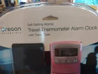 The Oregon Scientific Self-Setting Atomic Travel Alarm Clock Calendar and Case is a modern, rectangular-shaped alarm clock that is battery-powered and features a digital display. It is designed for teens and adults and can be used in various rooms such as the bathroom, bedroom, home office/study, and dining room. The clock is an original model RM832A from 2005 and is made of plastic with a green finish. In addition to its alarm and travel features, this clock also includes a calendar and is themed around the atom character. It is an ideal unit for those who want a sleek and functional alarm clock without the need for manual settings.