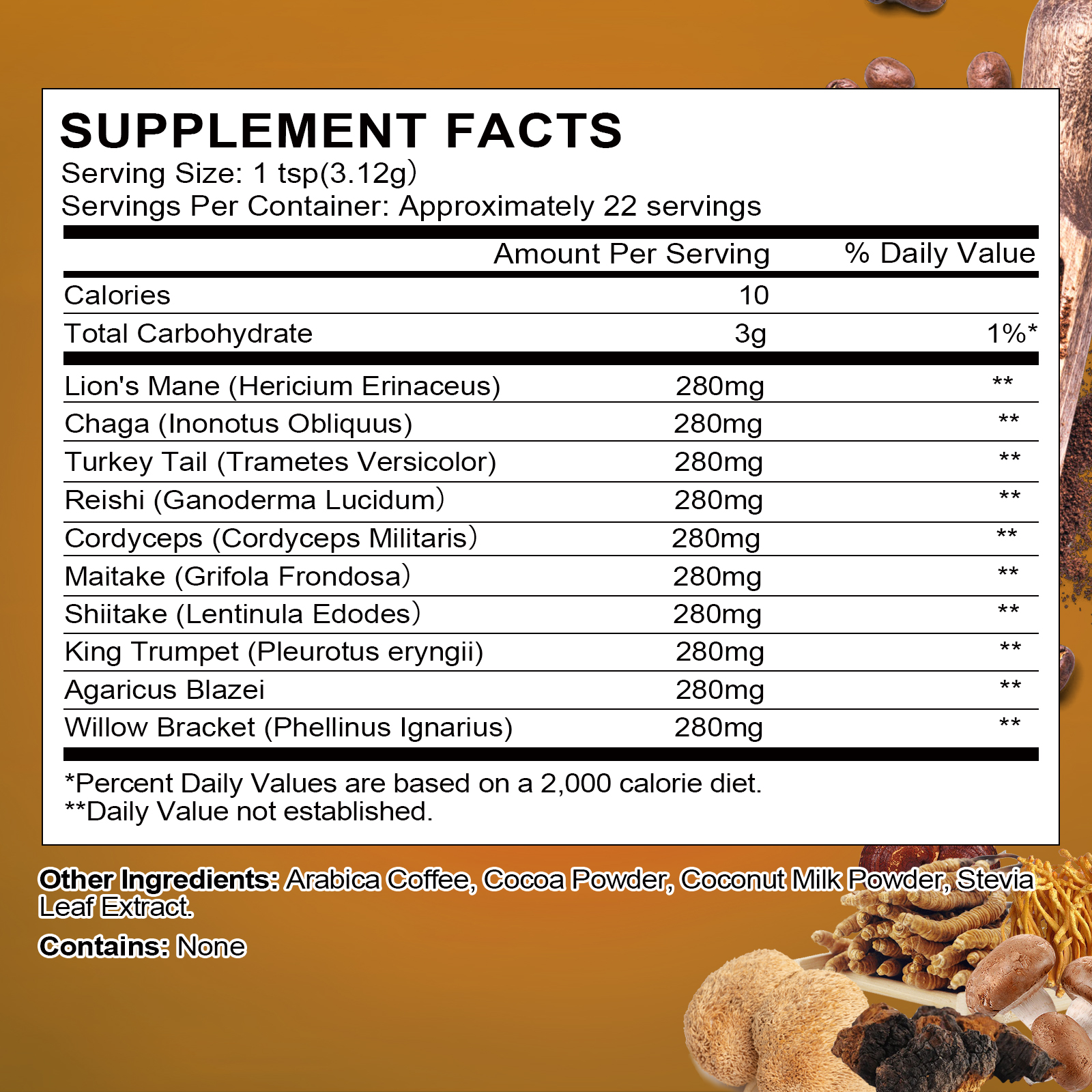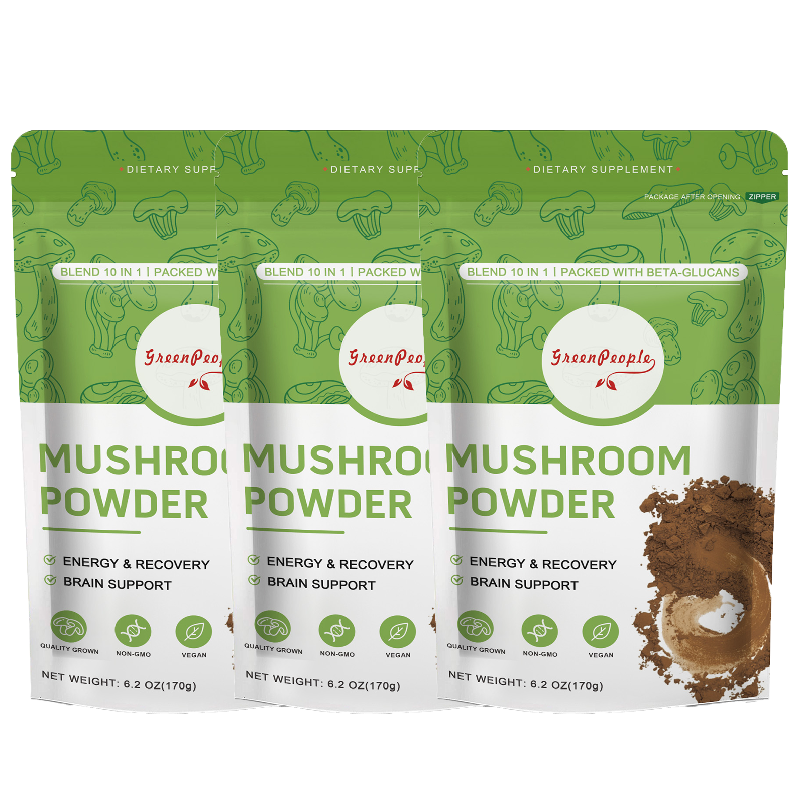 About this item Nutritional Value: With a blend of essential, potent ingredients to help with memory, focus and clarity, immune defense, gut health, natural adaptogen, and energy , we provide products that the body needs to maintain a health lifestyle. Mushrooms Blend Powder: Our mushrooms contain more than 29% beta-glucans ,which are the beneficial compounds you are looking for; We use whole mushroom fruiting bodies with no filler,mycelium,extra starch,or grains Multi functional daily supplements: Ultra fine powder, dissolves quickly, is easy to absorb, and can be easily added to beverages such as water, juice, milkshakes, coffee, etc. It can also be used for baking and cooking, making it convenient and fast. One spoonful per day can supplement daily nutrition and easily start a healthy life. Quality assurance: GreenPeople is committed to providing you with high-quality mushroom powder products, all of which have undergone strict quality testing to ensure safety and effectiveness. Provide satisfactory after-sales service. If you have any questions about the product, please feel free to contact us and we will be dedicated to serving you. Natural ingredients, safe and side effects free: Sugar free and gluten free , without adding any artificial colors, flavors, preservatives, pure and natural, suitable for vegetarians , Safe and reliable, you can eat with confidence.