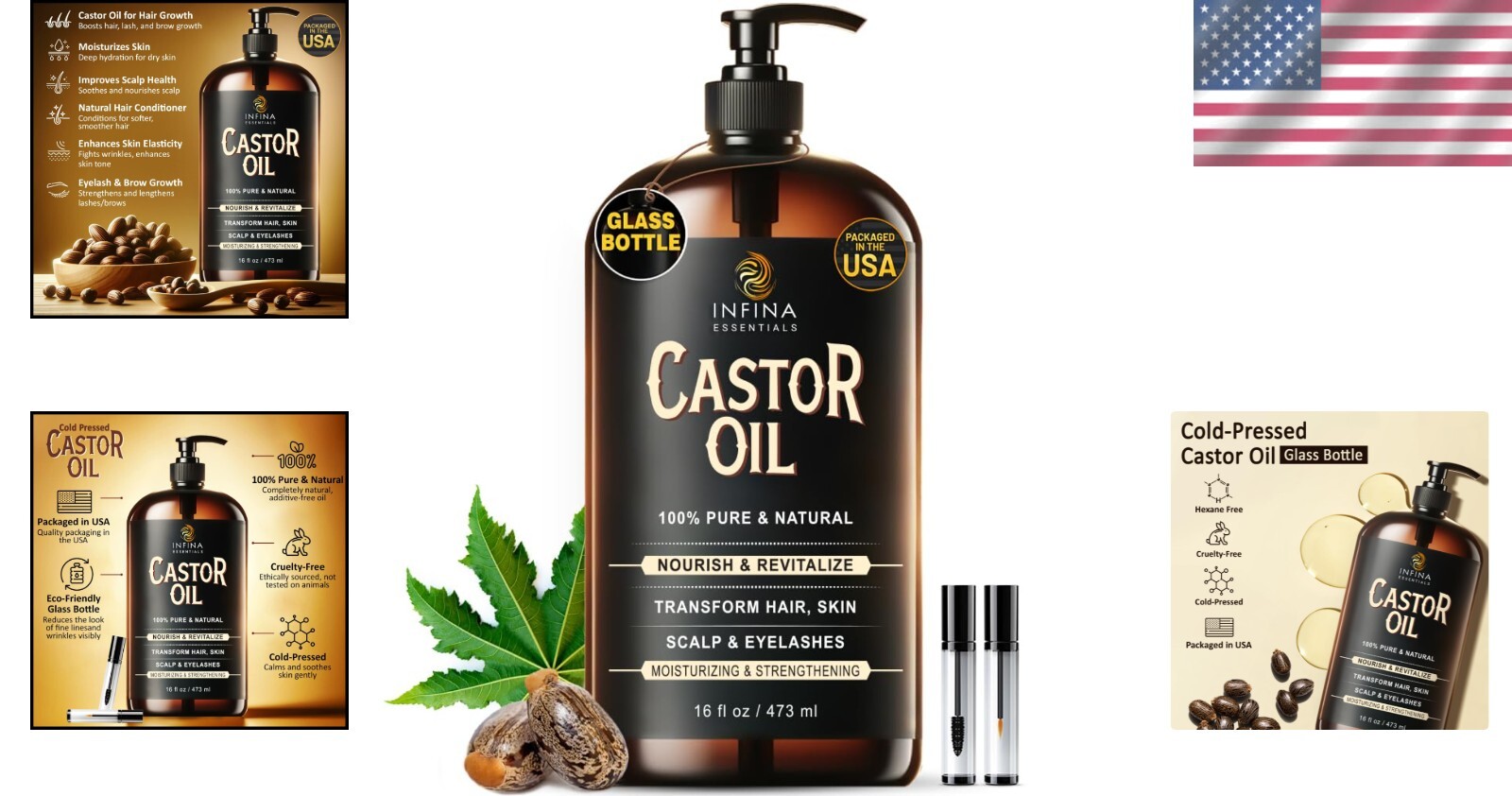 Pure Cold Pressed Castor Oil for Hair & Skin - Nourishing 16 fl oz Glass Bottle < class="slides"> ‹ › ‹ › ‹ › ‹ › ‹ › ‹ › ‹ › ‹ › ‹ › ‹ › ‹ › Pure Cold Pressed Castor Oil for Hair & Skin - Nourishing 16 fl oz Glass Bottle Experience the epitome of natural beauty and wellness with our 100% Pure Castor Oil, expertly cold-pressed and free from hexane. Features: 100% Pure, Hexane-Free, and Cold-Pressed for unmatched quality. Rich in essential nutrients, promoting healthy hair growth. Versatile application for skin, nails, eyelashes, and eyebrows. Comes in a secure glass bottle to preserve purity and effectiveness. Includes easy-to-use tools for precise application to enhance lashes and brows. Benefits: Nourishes and rejuvenates hair, scalp, and skin. Hydrates and strengthens nails, making them less brittle. Improves hair growth, promoting lush, healthy locks. Enhances the natural beauty of your eyelashes and eyebrows. Packaged to ensure maximum purity and longevity of the oil. Why Choose Our Pure Castor Oil? Transform your beauty routine with our Pure Cold Pressed Castor Oil, a luxurious blend that encompasses the comprehensive care your hair, skin, and nails deserve. Derived from the finest sources and expertly filtered, our castor oil is not just a product - it's a commitment to self-care and natural wellness. Don't settle for anything less than the best in nurturing your beauty essentials. Elevate your regime today with our nourishing castor oil and embrace the radiant, rejuvenated you! Shipping Free & Fast Shipping - We offer free shipping to most of the USA with a normal delivery time of 3-7 days. However, due to the current situation, additional delivery time (up to 3 weeks) may be required for some items. Alternative Carriers - We may use alternative carriers (e.g. USPS, FedEx, UPS, etc.) to ensure your package arrives safely and on time. Due to the use of multiple carriers, we are unable to provide a tracking number automatically. Handling Time - Orders are processed and shipped within 1-2 business days of receiving cleared payment. Shipping Restrictions - Shipping to Alaska, Hawaii, Puerto Rico, Guam, and other US territories may incur shipping charges or delivery restrictions. Please contact us before ordering, or your order can be refunded/cancelled. State Restrictions - There may be restrictions based on your state of purchase. For example, certain items may not be shipped to California due to state regulations. Contact for Tracking Updates - If you require tracking updates or have any concerns about the delivery of your order, please feel free to contact us, and we will be happy to assist you. Return 30-Day Hassle-Free Returns - We want you to be completely satisfied with your purchase. If you are not, you can return the item within 30 days of receiving it for a full refund or exchange. Easy Return Process - To start a return, simply contact us and we will provide you with a prepaid return shipping label and detailed instructions. Restocking Fee - There are no restocking fees for returns. However, the buyer is responsible for return shipping costs if the return is not due to a seller's error. Refund Processing Time - Refunds will be processed within 5 business days of receiving the returned item in its condition. Payment We accept all major credit cards, PayPal, and Apple Pay for your convenience. Your payment information is secure and encrypted to ensure a safe and seamless transaction. Please complete your payment within 3 days of purchase to avoid any delays in shipping. Feedback Your feedback is extremely important to us. We strive to provide the best products and customer service possible. If you are satisfied with your purchase, please take a moment to leave us a positive review. If you have any concerns or issues with your order, please contact us before leaving negative feedback. We are committed to resolving any problems and ensuring your satisfaction. Contact Us If you have any questions or concerns, please feel free to out to our customer support team. You can contact us through the eBay messaging system. We are available Monday to Friday, 9:00 am to 5:00 pm EST, and we will do our best to respond to your inquiry within 24 hours. Buy it now and enjoy a pleasant shopping experience! Unit Quantity: 16 fl oz Hair Type: All Hair Types Ingredients: Castor Oil Features: Alcohol Free,Contains Vitamins,Cruelty-Free/No Animal Testing,Hypoallergenic,Organic,Paraben-Free,Hexane Free,Cold-Pressed,BPA Free Styling Effect: Moisturizing,Nourishing Formulation: Oil Department: Adult,Unisex Scent: Castor Type: Hair Oil Size: Standard Size Volume: 16 fl oz Unit Type: fl oz