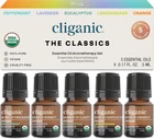 Packaging May Vary - New look, same great product. Included in this Gift Set: Peppermint, lavender, eucalyptus, lemongrass & orange. essential oils gift set for aromatherapy diffuser. Certified Organic - Cliganic organic essential oils are proudly USDA organic certified to ensure ultimate quality and integrity. 100% Pure, Single Ingredient Oils - Cliganic organic essential oils are a single-ingredient product. No synthetic additives, ever. Non-GMO Certified, Vegan & Cruelty-Free - Free from additives, Cliganic aromatherapy oils are proudly non-gmo project verified, certified vegan and cruelty-free. 3rd Party Tested for Purity - Each batch of our essential oils is being tested for purity by a 3rd party independent lab. Product Description Cliganic Organic Aromatherapy Set (Top 5 Essential Oils) We offer only 100% Pure, Natural, Organic, Non-GMO Essential Oils. That means the oils are uncut (no carrier oils are added) and they are free of chemicals, no synthetics, etc. You’re getting premium, high quality, affordable essential oils. Each oil in our 5-pack set are poured into glass amber bottles, which protect the oils from being de-sensitized, which weakens their scent and their properties. Each bottle comes with a German Dropper Cap (orifice reducer) that gives you better control - one drop at a time! Our 5-pack is an affordable gift for even the most expensive tastes. Perfect for gifting on holidays, birthdays, and special occasions. You could even include a few of our blends and recipes for a thoughtful touch. If you’re new to essential oils, this is your must-have starter kit. We’ve chosen 5 of the most popular essential oils for you, which have a wide range of benefits. You’ll be glad to know that using oils to get these benefits is very simple. Diffusing the oils, or, blending them for topical use with Cliganic Jojoba oil, are two easy ways to get started. Legal Disclaimer: These products are not intended to diagnose, treat, cure or prevent any disease or health condition. Included in this Organic Aromatherapy Set: Organic Peppermint Oil has a clean, refreshing, minty, cool scent. It’s stimulating, work with this oil to ease feelings and to balance emotions. Blends well with Frankincense and Lavender. Organic Lavender Oil has a sweet, floral, herbal scent. It’s favorited as the #1 essential oil due to its many benefits. Lavender is the most gentle but powerful essential oil that can be used by anyone. Blends well with all oils, especially citrus oils like Lemongrass and Orange. Organic Eucalyptus Oil has a strong, fresh, sweet scent. It's also a great essential oil to use in massage or with other topical blends. Blends well with Frankincense and Lavender. Organic Lemongrass Oil has a fresh, grassy and earthy scent with a strong lemon note. If you are looking for an essential oil that can help give you an uplifting emotional boost, Lemongrass is the one. It's perfect to use in blends when you are emotionally or physically exhausted, or when you need help focusing and getting motivated. Blends well with Lavender, Tea Tree and Rosemary. Organic Orange Oil has a citrusy, sweet, and refreshing scent. The invigorating scent helps enhance focus, revitalizes and rejuvenates. This oil’s properties make it a wonderful oil to work with in the morning or at your office, as it gives you a sense of regeneration and optimism. Orange oil is also a great, natural ingredient to add to your cleaning products for household chores. Blends well with Frankincense, Lavender and other citrus oils. Discover Cliganic Organic Essential Oils Sustainable Cliganic Essential Oils are Made in USA with globally sourced ingredients from reputable suppliers. 3rd Party Tested for Purity Each batch of our Essential Oils is being tested for purity by a 3rd Party Independent Lab. Available in Various Sets! Top 5 Top 6 Top 8 Top 12 Cliganic Commitment At Cliganic, we believe that natural products are key to a balanced body and soul. We source only pure high quality ingredients and we stand behind every item that we make, 100% USDA Certified Organic - Non-GMO Verified The strict oversight of USDA ensures the integrity of our oils. In other words, it’s really Organic (by QAI 03/2017). This product is verified with the Non-GMO Project (by NSF 01/2019). Cruelty Free & Vegan Not Tested on Animals. Cliganic meets PETA's requirements to be listed as Cruelty-Free (by PETA 07/2015).