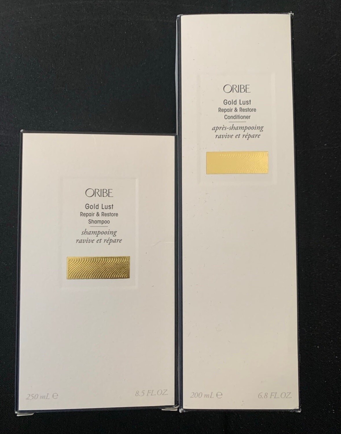 Oribe Gold Lust Repair & Restore Shampoo 8.5fl oz New with box Conditioner 6.8fl oz New with box $53 + $56 = $109 → $99