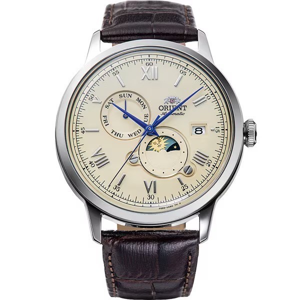 The Orient Bambino SUN & MOON RN-AK0803Y Mechanical Automatic Limited Watch is a classic men's wristwatch featuring a round stainless steel case with a smooth silver bezel. The watch has a 22 jewel mechanical automatic movement, Roman numeral indices, and a dark brown leather bracelet with a buckle closure. The watch also features a moon phase display on the ivory dial, perfect for those who appreciate traditional and elegant timepieces. This watch comes with its original box and manual, making it a great addition to any watch collection. Shipping π Shipping Information: π¦ Fast, reliable, fully tracked, and insured delivery via DHL or FedEx. In some cases, Japan Post EMS SpeedPost may be used depending on your location. π Customs forms properly included. π Import duties or taxes may apply depending on your country. π¦ Professionally packed for safe international shipping. Tracking number will be provided once shipped. About Us I am station in Tokyo,Japan Very happy to introduce Japan unique interesting products through all over the world. Any question questions regarding Japan items welcome. International Buyers - Please Note: Import duties, taxes and charges are not included in the item price or shipping charges. These charges are the buyer?s responsibility. Please check with your country's customs office to determine what these additional costs will be prior to bidding/buying. These charges are normally collected by the delivering freight (shipping) company or when you pick the item up - do not confuse them for additional shipping charges. We do not mark merchandise values below value or mark items as gifts - US and International government regulations prohibit such behavior.