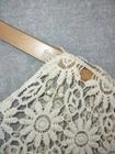 Welcome to Aspen Crossing, the place for modern western bohemian style reflecting the rugged beauty of our American West Origami Crochet Fringe Poncho Womens One Size Beige Boho Festival Lace Sweater Short Kaftan Pullover Top Condition: Good pre-owned condition with some small flaws; minor spot/discoloration and a few areas of light fraying/pulls as shown in photos Open crochet lace design with floral/star patterns throughout Natural beige/ivory off-white color, lightweight, semi-sheer, perfect for layering Knit 100% cotton material as per tag Style No: 301-T71, RN No: 143259 Pullover, unlined, poncho fit with open sides and knotted fringe hem Hand wash separately; care instructions as on interior label Approximate measurements: 32 inches across, 26 inches length to fringe hem (see photos for visual reference) Ideal for boho, festival, beach, or casual layering outfits See all photos for details and actual condition Please note: While every effort has been made to reproduce actual colors in photos, variations may occur on your screen.