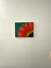 Pink sunflower painting with a green background. Original, handmade botanical inspired wall art. Dimensions: 10" x 8" canvas used.