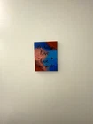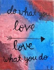 "Do what you love, love what you do" inspirational quote acrylic painting on canvas. Red, blue, and pink color themes, with cursive lettering. Dimensions: 7" x 9" canvas used.