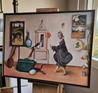 Original oil painting titled "Uncharted" by surrealist painter Rye Watts. Gallery shown piece. Installed in aluminum alloy brushed bronze floater frame. Framed measurements: 25.5 x 18.5 x 2" The painting is signed by the artist and comes with a Certificate of Authenticity. It is ready to hang as stretched canvas in wired floater frame. All artwork shipped directly from the artist. Free shipping in U.S. Title: Uncharted Artist: Rye Watts Medium: Oil on Canvas Year: 2024 ★ Shipped in heavy cardboard and sustainable paper padding. ★ Shipped with a tracking number. ★ If you have any questions, please message me and I can add photos or video. ABOUT THE ARTIST Rye Watts is a pop surrealist artist based in Portland, Oregon.