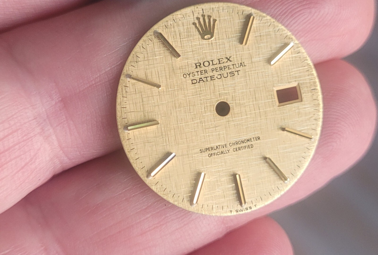 Rolex 100% original rare gold linen pattern fits men's 36mm case model 16233 or 16013,116233 in 2 tone steel and gold q-set series. 3035 or 3135 caliber In great, shape as pictured