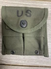 This is a genuine US Military Korea Vietnam M1 Carbine Ammo Magazine Belt Pouch Canvas AN, perfect for collectors of militaria. It was manufactured in the United States and is an original piece from the period. The pouch is designed for carrying ammunition and magazines of the M1 Carbine rifle, making it a unique and valuable addition to any collection. The canvas material gives it a rustic and authentic look, and it has not been modified in any way. This item is a must-have for anyone interested in the history of the US Military and the Vietnam War.