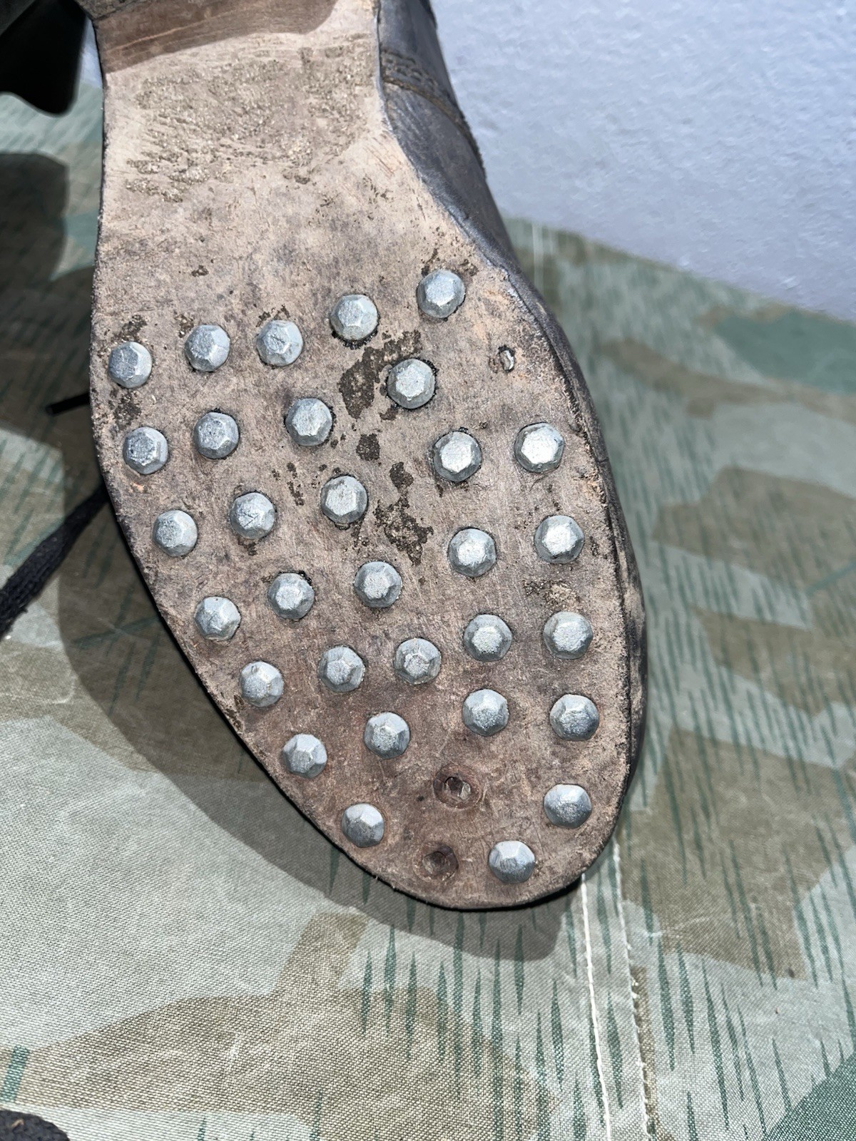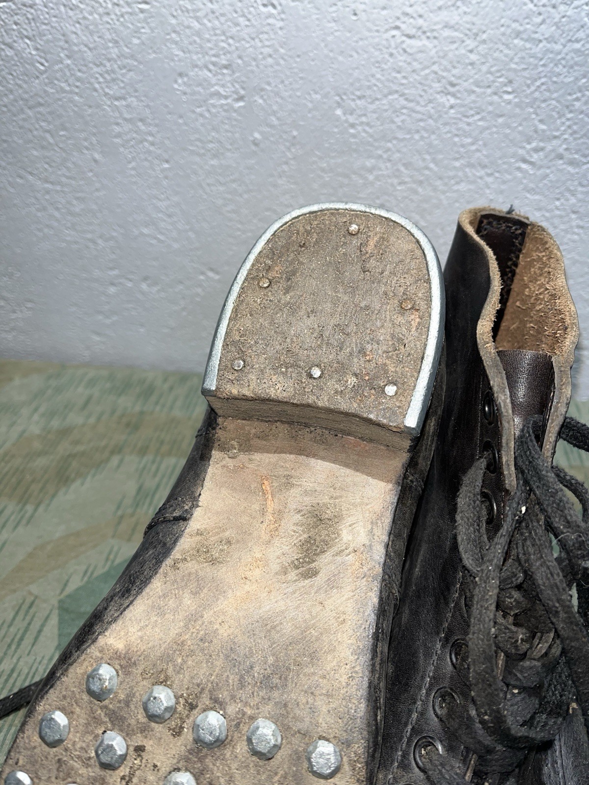 Enlisted boots. Good condition. leather is in really good shape on the inside and outside. The soles show the usual sign of use and are missing a few hobnails. Size 10 was determined by measuring the insole. Shoelaces are not original to the shoe. Any other defects should be visible from the pictures and should be reviewed and judged by the buyer before they purchase to avoid any returns or disputes. Message me with questions. Buyer is responsible for paying return shipping fees and forfeits the cost of the original shipping price if a return is requested. No exceptions to this. Please only buy if you know for sure it will fit and you will keep it.