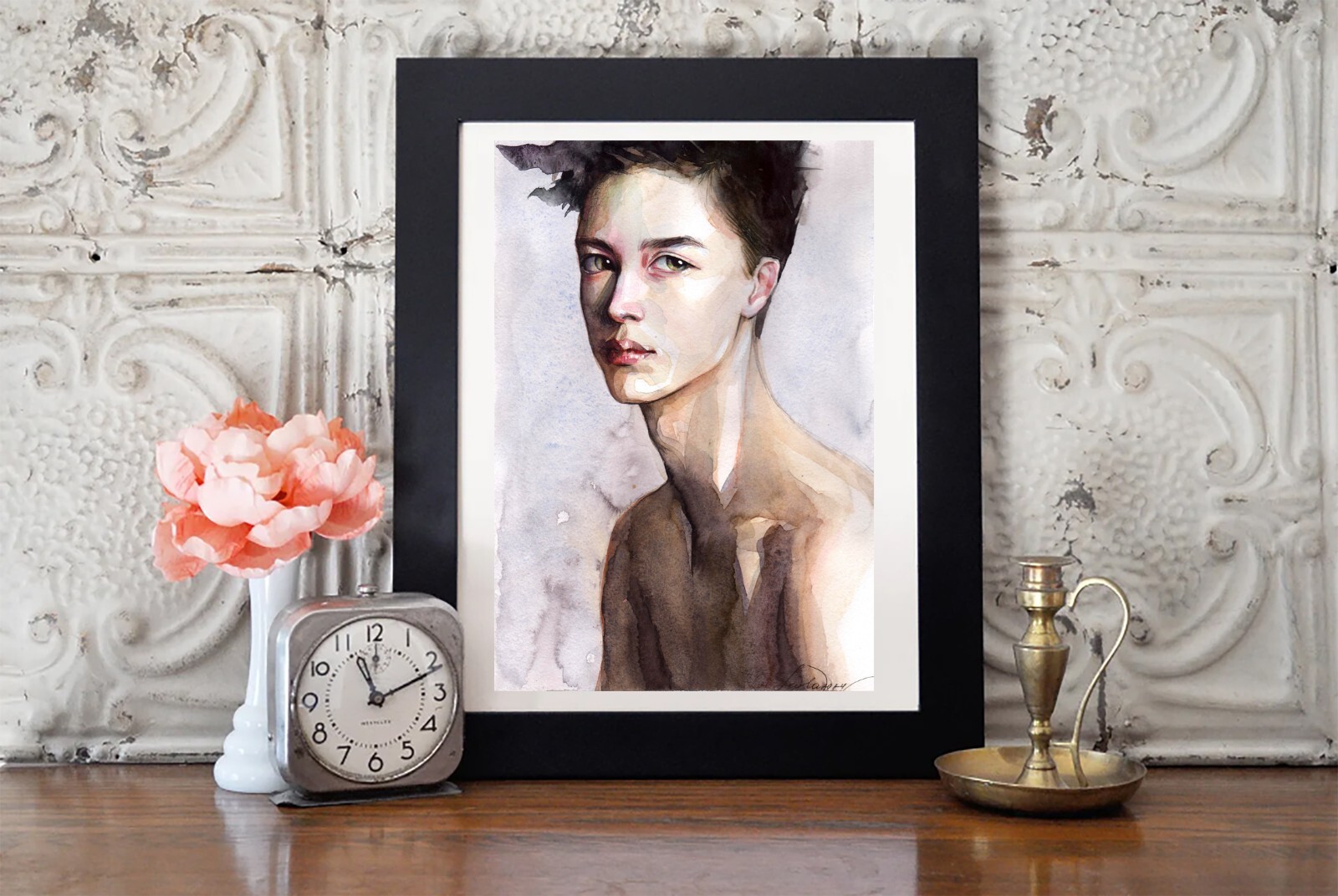 Original Watercolor Asian Man Portrait Painting for Wall Art Decor