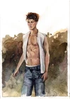 Original Watercolor Painting Male Figure Wall Art Man in Nature Painting