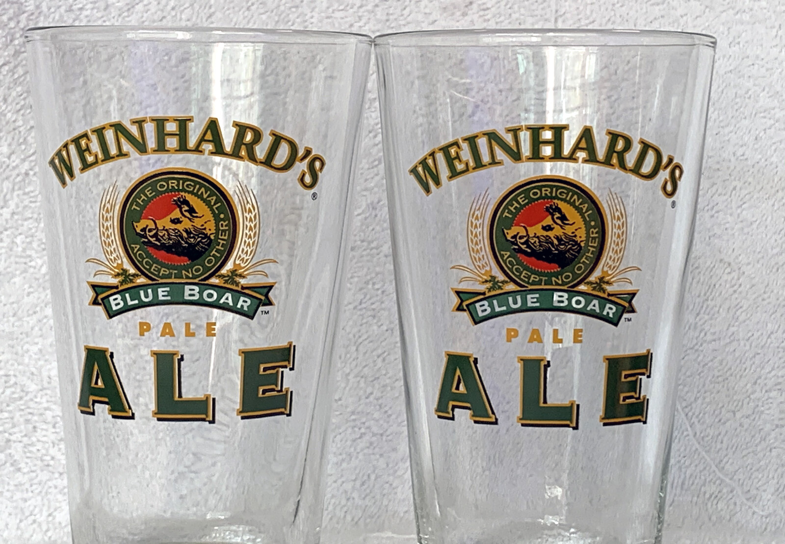 2 new Weinhard's Ale pint glasses Measures 5.75" tall Holds 14 oz Colorful logo is on the front