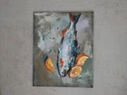 Embrace the beauty of contemporary art with this original oil painting featuring a captivating fish motif. The piece is meticulously crafted on a 10-inch wide cotton canvas, ensuring that the rich textures and layers of paint stand out. Artist Elena Art's signature confirms the authenticity of this one-of-a-kind creation, imbued with the impressionist, realistic, and contemporary art styles that breathe life into the subject. This medium-sized artwork, measuring 8 inches in height, is a testament to the modern era of art production, completed in 2024. It serves as a standalone piece, perfect for adding a touch of elegance and depth to any space. The painting is unframed, offering the flexibility to match any decor, and is solely the creation of the artist, ensuring uniqueness and personal expression.