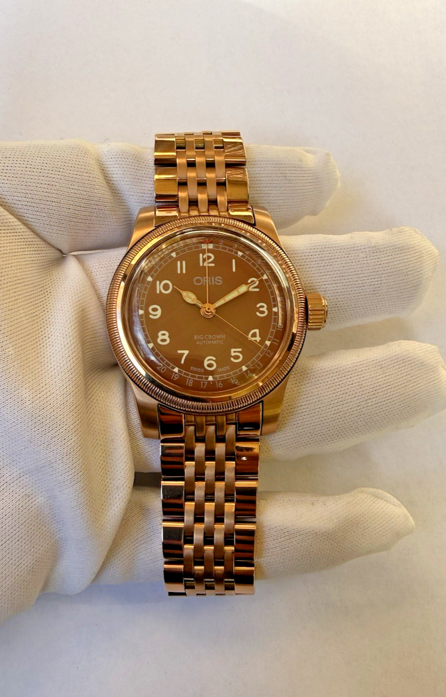 Discover the timeless elegance of the Oris Big Crown Rare Stainless Steel Date Pointer Watch, a testament to classic Swiss craftsmanship. Featuring a robust 39mm stainless steel case and matching bracelet, this watch is a versatile companion for both casual and formal occasions. Its automatic mechanical movement with 25 jewels ensures precise timekeeping, while the analog display provides a clear and easy-to-read timepiece. With its roots in the 1980s, this Oris Big Crown model, reference 26-50292, showcases a round, screwback case designed to durability and longevity. Despite being without its original box and papers, the watch's undeniable charm and Swiss heritage make it a noteworthy piece for collectors and watch enthusiasts alike. All maintenance of the watch has been done by a professional watch maker and it works smoothly. All functions are active. Photos are part of the description. Please have a careful look. There will be no custom duty for orders in the US. This watch will be shipping from within the US.
