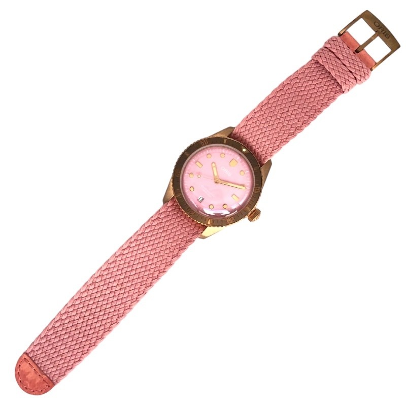 Absolutely love this Oris Diver 65 Cotton Candy watch! The unique bronze case and cotton candy dial give it a fun yet sophisticated vibe. Perfect for adding a pop of color to any outfit while keeping that classic dive watch durability. The stainless steel accents balance the playful design beautifully. Highly recommend for anyone looking for a standout timepiece with serious style!
