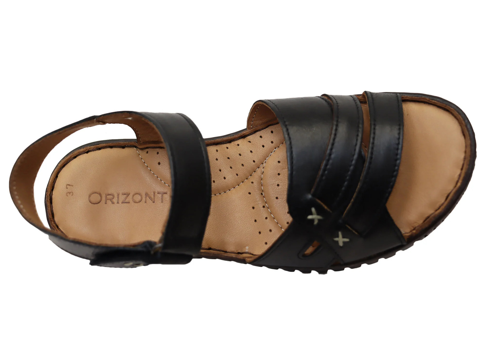 Orizonte Breezewalk women's sandals blend sophisticated European leather craftsmanship with modern comfort. The convenient Velcro strap over the instep offers adjustability, while the luxuriously soft, cushioned footbed pampers your feet all day. A distinctive sole pattern adds subtle uniqueness to your every step, making these sandals a refined choice for effortless style and lasting comfort. Features Include: Leather upper & lining Leather insole Adjustable velcro strap over instep Cushioned, comfort footbed Lightweight sandals Made in Europe In Stock - Ships to you in 1 - 4 business days This product is ready to ship from our Melbourne warehouse. Expect dispatch in 1 - 4 business days.