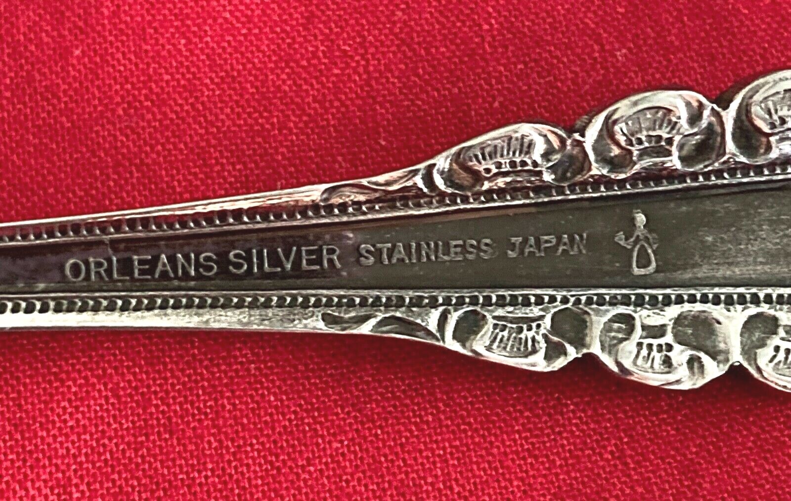 Manufacturer: Orleans Pattern: UNF 310 ~ Black Accent, Beaded Outline, Floral Tip Type: Stainless Steel Piece: Teaspoon Length: 6 1/2"