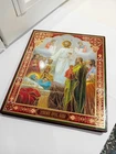 Orthodox Byzantine Greek Lithography Icon. The Assumption of the Virgin Mary, 20 x 24.5 cm 7.8*9.6 inches The Assumption of the Virgin Mary is one of the Royal Feasts of the Orthodox Church, celebrated on August 15. This feast commemorates the falling asleep and glorification through the ascension of the Mother of the Savior. The feast testifies that the Mother of God "was taken" by God into the heavenly kingdom of Christ, in the fullness of her soul and body life. About the holiday The Orthodox feast of the Assumption is very close to what Roman Catholics call the Assumption of the Blessed Virgin Mary. According to Holy Tradition, the Mother of God died like any human being, "falling asleep", as the name of the feast indicates. She died as all men die, not "voluntarily" like her Son, but by the necessity of her mortal human nature which is inextricably bound up with the corruption of this world. The apostles were miraculously brought to this event, and they were all present, except the Holy Apostle Thomas, when the Mother of God passed from this life. Then she was buried. The Apostle Thomas arrived a few days later; wanting to see her once more, he persuaded the others to open the tomb of the Mother of God. Then the Apostles discovered that Her body was no longer in the tomb. This moment is for us the firstfruits of the general resurrection of believers, which will take place after the second coming of Christ. The holiday is called the Dormition of the Mother of God, commemorating her passing from this life, the word "Adormire" translating the Greek Koimisis, which means falling asleep to death (this is where the word cemetery comes from). The Roman Catholic Church prefers to call this event the ascension to heaven (lat. assumptio, literally "reception" [into heaven]) because, taking into account the disappearance of the body of the Mother of God from the tomb, it considers that She was raised with the body to Heaven. As in the case of the Nativity of the Holy Virgin, or in the case of the Entry into the Church, there are also no historical or biblical references for the Assumption of the Virgin Mary for this celebration. The Orthodox Church preaches that the Mother of God is without sin, but also that the Virgin Mary really needed to be saved by Christ - saved from the trials, sufferings and death of this world. She truly died and was then taken up to Heaven by her Son as the Mother of Life, and already partakes of the endless life of the Kingdom of Heaven. This life in heaven is prepared and promised to all those who "hear the word of God and keep it" (Luke 11,27-28) Delivery We do ship Worldwide by Registered mail With Tracking number. Shipping time takes up to 11 - 15 Business days. All additional payments such as the tax are the buyers responsibility. We ship only to the approved address that Registered in PayPal. Handling time 3 Business day. Thank you for visiting my store! We always invite you with love and special pleasure, because we work daily to find and list for you various authentic and very beautiful objects of worship