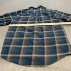 Orvis Shirt Mens XL Blue Green Plaid Flannel Heavyweight Lined Pockets Outdoor Condition: Gently worn, no visible flaws or stains. Buttons are intact and shirt is clean with minimal signs of wear. 100% cotton shell with a soft, heavyweight flannel feel. The shirt is lined making it ideal for colder weather wear. Classic Orvis branding on the leather patch inside the collar. Features two button-flap chest pockets and two side seam handwarmer pockets. Tag size: XL (Mens). Main colors are blue, green, and yellow plaid with a rugged outdoor look. Button front, button cuffs, double-stitched seams for durability, and curved hem. Perfect for layering or as a warm overshirt/shacket for outdoor activities. Made in Bangladesh. Approximate flat measurements (from photos): pit to pit 25 inches, back length from collar to hem 32 inches.