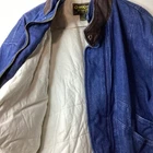 Rugged character defines this classic denim jacket. The jacket offers a touch of vintage cool with its sturdy denim construction and a distinctive leather-look collar that adds a refined edge. Quilted lining promises warmth and comfort for cooler days. With its snap-front closure and practical pocket design, it offers both functionality and style. Type: Jacket Style: Bomber Jacket Outer Shell Material: Cotton Blend Department: Men Lining Material: Polyester Insulation Material: Polyester Theme: Retro, Vintage, Classic Fabric Type: Denim Features: Lined, Snap Front Accents: Button Pattern: Solid Performance/Activity: Walking Closure: Snap, Zip Keywords: OshKosh jacket, denim jacket, leather collar, mens jacket, quilted lining, snap front jacket, vintage denim, retro jacket, casual jacket, blue denim, brown collar, coat, outerwear