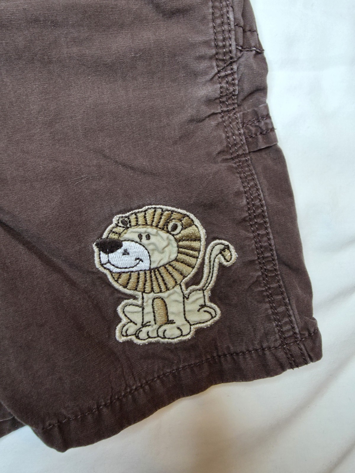 The Oshkosh B'Gosh Vintage Brown Bib Overall Shorts in size 24 months are a stylish and comfortable choice for baby boys. Made from 100% cotton, these one-piece overalls feature a solid brown color with a jungle animal print, perfect for a casual occasion. The sleeveless design and machine washable garment care make them easy to wear and care for during the summer, fall, and spring seasons. With a vintage appeal and the trusted OshKosh B'Gosh brand, these bib overalls are a timeless addition to any little boy's wardrobe.
