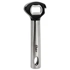 Open bottles and cans with ease with the Oster Baldwin 6 inch manual stainless steel bottle opener. Constructed with durable stainless steel for a sturdy grip, this bottle opener features a standard steel bottle opener, a pull tab for cans and beverage bottles, and a ridged compartment that makes twisting bottle tops off easy. Hanging hole provides storage options to save space in your kitchen!