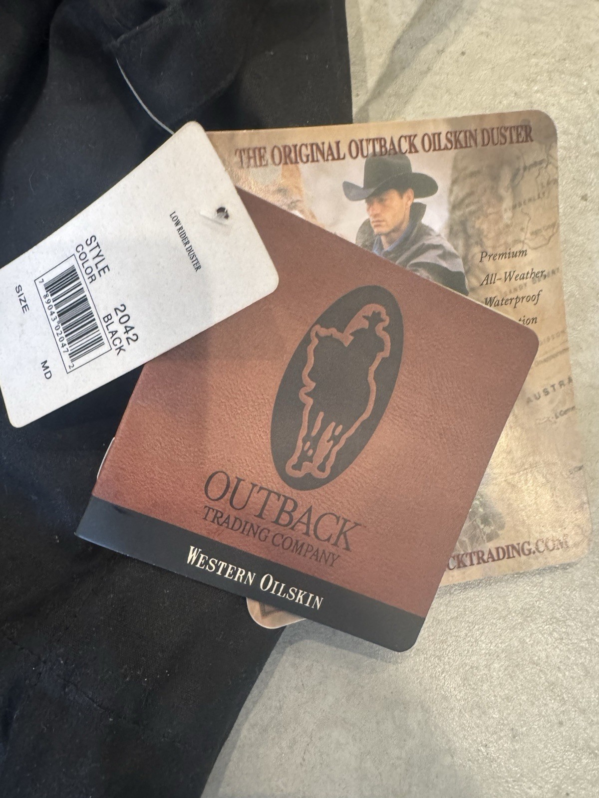 The Outback Trading Co Oilskin Duster is a stylish and durable men's/women’s long trench coat jacket made from Australian oilskin fabric. This classic black duster coat features a snap closure and is designed in a size medium with a regular fit. Perfect for those looking for a timeless and versatile outerwear option that can withstand various weather conditions. Fits more towards a women’s medium or men’s small