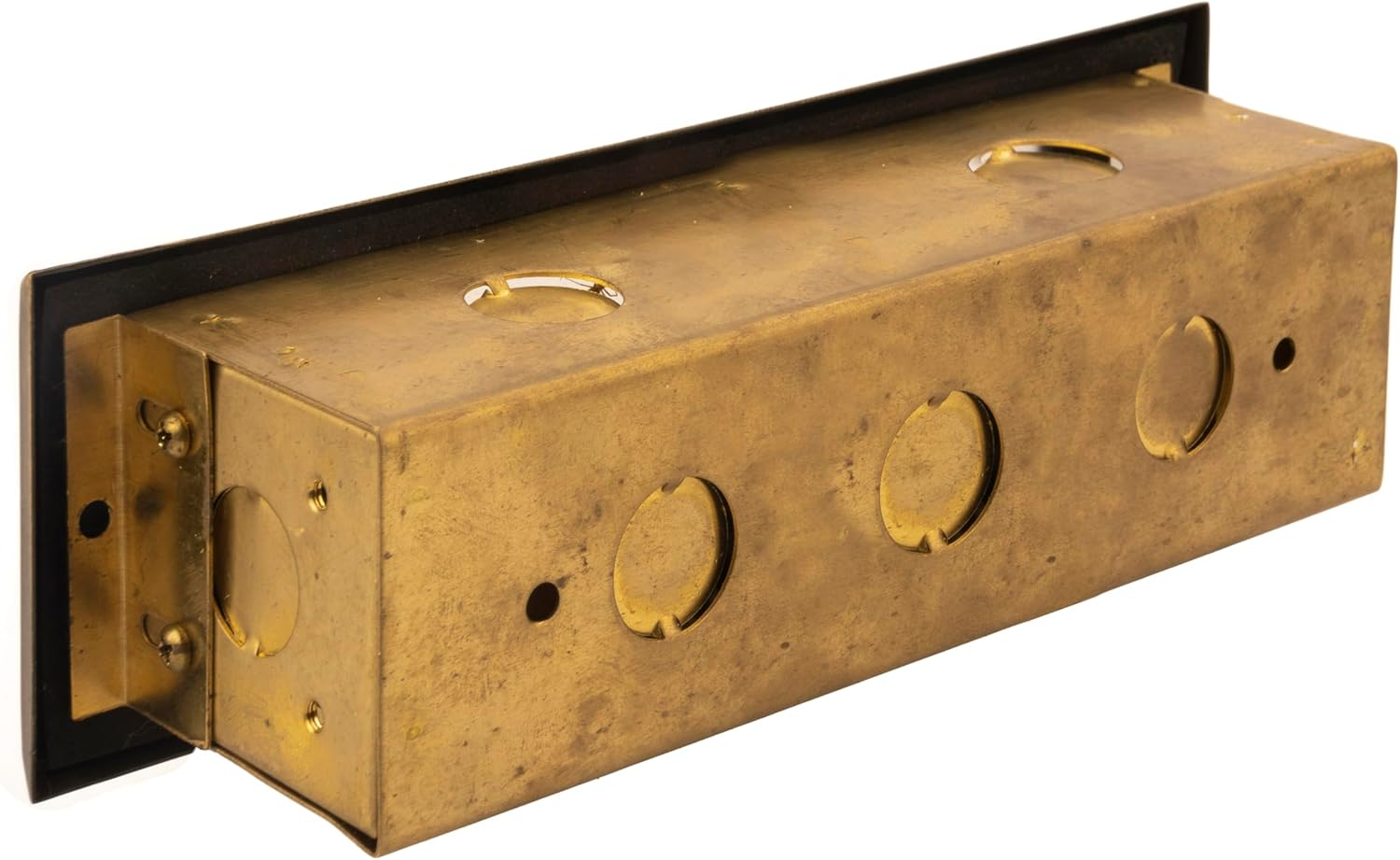 Low voltage outdoor LED step light with concrete deck solid brass faceplate and steel box