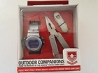 Introducing the Outdoor Companions Pocket Multi-Tool, Sports Watch, and 6 Function Arrow Swiss Knife. Multi-tool features pliers, bottle opener, nail file, flat head screwdriver & cutting blade. 6 Function Arrow Swiss Army Knife includes cutting blade, can opener, corkscrew, Phillips head screwdriver, bottle opener and flat head screwdriver. Digital LCD Sport Watch with date, lap time, sounding alarm and adjustable wrist band. All you need for the outdoors! Brand New. Please view photos.