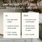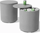 About this item KEEP COOL - Keeps 48 12 oz. cans cool for up to 12 hours with an ice capacity of 40L of 10.5 Gallons. Cool gifts for dad or mom! MODERN DESIGN - Clean, modern design. From the balcony, to the patio, to the pool, the Cooler Table fits any house and any space. Comes in various colors including black, white, sandstone and gray. ALL WEATHER RESISTANT - The most durable backyard furniture, deck furniture, outside decor, outdoor tables you will ever own. Weather tested in -20 degrees to +120 degrees. Fade and crack resistant. MADE FROM REAL STONE - The only outdoor bar set, patio accessories or outdoor end table made from a PATENTED stone-plastic composite. The look/feel of stone with the performance of plastic. MADE IN CANADA - In Canada, we know extreme temperatures. Designed and made in Canada, you can rest assured that your Cooler Side Table will be of the highest quality and last all year round. VERSATILE - Can be used as an outdoor table, outdoor storage bench, small outdoor table, outdoor side tables for patio, small patio table, outdoor bar table, bar decor, cooler, patio side table, etc. Product Dimensions: 18.5"D x 18.5"W x 21"H Item Weight: 31 Pounds Maximum Weight Recommendation: 100 Pounds Frame Material: Plastic