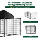 Anti-rust & Protection Design: dog cage has epoxy coating to prolong metal life, preventing rust, corrosion & fading. No need to worry about rust in rainy days. Metal surface is treated to prevent sharp edges harming pets Waterproof Removable Roof: The dog enclosure outdoor roof is made of UV-resistant and waterproof Oxford cloth, fitting outdoor dog run. Elastic ropes hold it firmly, preventing wind blow-away. The UV-resistant coating prevents fading and cracking Double door latch door: The kennel is equipped with double door locks, which are strong enough to prevent smart dogs from opening the door by themselves. Resting outdoors safely Large Interior Space: The size of the enclosures is 4ft x 4ft x 4.5ft, the right size provides ample space for your pets to rest and play in a friendly and safe environment. If you want more space, you can also connect more dog crates together Unique Design: The dog kennel has reinforced ground nails to fix the cage outdoors, preventing knockdown or movement. It's also suitable for indoor, with non-slip rubber feet to prevent floor scratching. Ideal for small/medium sized dogs within 33 lbs