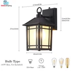 Specifications: IP65 Waterproof-Durable Use For Years Light sensor switch Automatically turn off the lights during the day Automatic light on at night Materials: Aluminized , Frosted glass Waterproof grade: IP65 Intended Use: Outdoor / indoor use. Style: Rustic / Classic / Modern. Installation Type: Hardwired. Voltage: 110 ~ 120V Bulb Type: E26 Base(Bulb NOT included)(Max.60W)-ompatible with LED bulb, Incandescent or CFL bulb. Size suitable for most scenarios. Sensor Type:Light What you get: 1 x Unassembed wall lamp(Bulbs Not Included) 1 xScrews sets 1 xInstruction Manual Tips: -Please make sure the light is securely supported and is disconnected from power when installing. -Installing the light bulbs before hanging the makes the installation easier. Outdoor Light Sensor Light Fixture Dusk to Dawn Porch Sconce Wall Mounted Lamp About this item WEATHERPROOF CONSTRUCTION: Weather resistant and suitable for wet locations, this outdoor wall light has a rust-proof iron construction, stronger and more durable than aluminum. It is ideal for decorating your entryways, yards, garden, front porch, patio, hallway, balcony and garages. PRODUCT DIMENSION: 10.6high x 6.9" wide. Backplate is4.33" high x5.5" wide. Power type - hard wiring. VARIOUS BULBS COMPATIBLE: Uses one E26 light bulb. Fully compatible with incandescent, LED, CFL, halogen bulbs, dimmable bulb, smart sensor bulb(dusk to dawn) (60W max, Bulb NOT Included). QUICK INSTALLATION: Easy installation with open bottom to allow for easy bulb replacement. The package already Includes all mounting hardware, and a installation instruction. Glass is easy to clean.Controlled by turning on/off the wall switch Specifications: IP65 Waterproof-Durable Use For Years Light sensor switch Automatically turn off the lights during the day Automatic light on at night Materials: Aluminized , Frosted glass Waterproof grade: IP65 Intended Use: Outdoor / indoor use. Style: Rustic / Classic / Modern. Installation Type: Hardwired. Voltage: 110 ~ 120V Bulb Type: E26 Base(Bulb NOT included)(Max.60W)-ompatible with LED bulb, Incandescent or CFL bulb. Size suitable for most scenarios. Sensor Type:Light Features: -Weather & Rust resistant, ideal for outdoor use. - holder for wet locations, reduces the loss of the bulb and prolongs the service life of the bulb. Compatible with all types of light bulbs. - Easy installationHard-wired ,Includes Installation instruction and all mounting hardware. This is not a plug-in design. What you get: 1 x Unassembed wall lamp(Bulbs Not Included) 1 xScrews sets 1 xInstruction Manual Tips: -Please make sure the light is securely supported and is disconnected from power when installing. -Installing the light bulbs before hanging the makes the installation easier. Notes: -When installing and cleaning light, youmust cut off the power supply. Payment Delivery details Terms of sales About us Contact us Payment We accept ebay payment 。 Fees such as import duties, taxes are not included in the item price or shipping costs. These charges are the buyer's responsibility. Delivery details Shipping: 2-9 working days to: USA Terms of sales We maintain high standards of excellence and strive for hundred percent customer satisfaction. Feedback is very important to us. We hope that you contact us immediately before you give neutral or negative feedback, so that we can address your concerns. It is impossible to address issues if we do not know about them! About us Your satis faction is our ultimate goal. We work hard to earn your trust and future business. Our certified technicians have tested each item before shipping. The unit comes with 1 year limited warranty on all manufacturing defects. a) If you receive a defective item, you may return it or ask for a discount. Please contact us within 14 days after you receive the package. b) What you returned must be intact and in its original packaging as re? u. Customer is responsible for shipping costs of the returned item. c) We will cover the cost of shipping back t with the shipping rate indicated in the registration page. We will send you a new unit or refund the full payment you paid. Thank you. Contact us Business Hour Business Hour: Monday To Friday: 8:30 AM to 5:00 PM (Beijing China time) Due to time zones, our reply to your questions may not be immediately. But within above working time, we will reply your email within 24 hours. If it's non-workdays, please kindly be patient and wait till Monday. Please contact us with ebay message. Please feel free to contact us if you have any questions. Monday To Friday: 8:30 AM to 5:00 PM (Beijing China time) Due to time zones, our reply to your questions may not be immediately. But within above working time, we will reply your email within 24 hours. If it's non-workdays, please kindly be patient and wait till Monday. Please contact us with ebay message. Please feel free to contact us if you have any questions. Features Fast shipping OE/OEM Part Number Does not apply MPN ( MPN ) n/a Modified Item No MPN Does not apply UPC Does not apply Model ( 模型 ) N/A Custom Bundle No ( 没有 ) Note: Not Ship To Canarias Mounting Wall Mounted Sensor Type Light Room Any Room Number of Lights 1 Brand Unbranded Type wall lamp Installation Area Outdoor Style Rustic / Classic / Modern. Lighting Technology LED、Compact Fluorescent (CFL)、Incandescent Material Aluminized , transparent Glass Light source E26(no lamp included) Color Black On Feb 21, 2025 at 02:41:52 PST, seller added the following information: