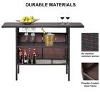 JUSTMAE - YOUR OUTDOOR FURNITURE CHOICE Modern design matches your patio furniture. It is a perfect wicker bar patio table for your outdoor party to serve drinks and snacks. Besides, the elegant appearance can match well with any outdoor and indoor area including garden, yard, pool, kitchen, dining room, etc. Features: With 2 layer steel shelves under table add additional storage space for your outdoor party. 2 stemware rack for hanging wine glasses allow for easy access to drinks. Make your backyard the place to be for outdoor socials with the Patio Wicker Bar Table top support up to 88lb Weather and UV resistant made it more durable High quality rattan ensures strong wear resistance for long lasting use Specifications: Color: Brown Material: Steel & Wicker Overall Free Shipping Over $49.99* Details Outdoor Patio Rattan Bar Counter Table Product Description: JUSTMAE - YOUR OUTDOOR FURNITURE CHOICE Modern design matches your patio furniture. It is a perfect wicker bar patio table for your outdoor party to serve drinks and snacks. Besides, the elegant appearance can match well with any outdoor and indoor area including garden, yard, pool, kitchen, dining room, etc. Features: With 2 layer steel shelves under table add additional storage space for your outdoor party. 2 stemware rack for hanging wine glasses allow for easy access to drinks. Make your backyard the place to be for outdoor socials with the Patio Wicker Bar Table top support up to 88lb Weather and UV resistant made it more durable High quality rattan ensures strong wear resistance for long lasting use Specifications: ColorBrown MaterialSteel & Wicker Overall Dimensions54.72"L x 18.1"W x 36.8"H Dimension of shelves:33.9"L x 17.3"W Bottom to Top Shelf23.22"H Weight Capacity:110lbs Weight39.6lb Package Includes : 1 x Bar Counter Table 1 x Accessories Bag 1 x Manual