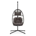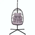 Features: CLASSIC EGG CHAIR: Overall chair dimensions (collapsed) are 76 inches long x38 inches wide x 38 inches deep; Seat is 29.2 inches wide x 25.6 inches deep x42.5 inches high;350-pound weight capacity: STURDY AND COMFORTABLE: Seat and frame of egg chair is constructed of polyethylene rattan resin wicker wrapped around a aluminum frame for weather-resistant protection, strength and durability; Back features nylon rope; Seat cushion and headrest pillow feature a polyester material and polyester fiberfill cores;All-in-one seat, back and arm cushion;Stand is made of powder-coated+Electrophoretic paint steel. It is sturdy & safe for you to sit in, and it will be a great addition to your indoor or outdoor furniture. EASY TO ASSEMBLE: This chair and stand are simple to put together with the Free Shipping Over $49.99* Details Outdoor Patio Swing Chair Patio Egg Chair Product Description: Features: CLASSIC EGG CHAIR: Overall chair dimensions (collapsed) are 76 inches long x38 inches wide x 38 inches deep; Seat is 29.2 inches wide x 25.6 inches deep x42.5 inches high;350-pound weight capacity: STURDY AND COMFORTABLE: Seat and frame of egg chair is constructed of polyethylene rattan resin wicker wrapped around a aluminum frame for weather-resistant protection, strength and durability; Back features nylon rope; Seat cushion and headrest pillow feature a polyester material and polyester fiberfill cores;All-in-one seat, back and arm cushion;Stand is made of powder-coated+Electrophoretic paint steel. It is sturdy & safe for you to sit in, and it will be a great addition to your indoor or outdoor furniture. EASY TO ASSEMBLE: This chair and stand are simple to put together with the included tools and hardware; Everything you need is in the box, including the chair, headrest pillow, seat cushion, safety strap and stand; Safety strap helps keep the chair safely in place while getting in and out of the chair; Chair provides a relaxing seat for one person LOOKS GREAT INDOORS OR OUTDOORS: Egg chair is designed to be used inside or outside; Stand and chair combo makes it easy to add a stylish seat to an apartment without having to permanently install it into the ceiling; Makes a wonderful addition to the patio, deck, garden, yard, backyard, porch, bedroom, living room and other places around your home MATERIAL USED- The egg chair used ALUMINUM frame and Power coating+Electrophoretic paint steel standing pole to avoid rusty problem, the egg chair used weather resistant fabric and wicker, the egg chair can be used for a long time.