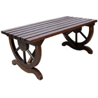 Outdoor Rustic Wooden Bench with Wagon Wheel Legs, 2 People Outdoor Bench Features Rustic Charm and Style: This bench features a beautiful burnt-like wood finish, giving it a unique rustic appeal that adds charm to any outdoor space. Unique Wheel Bench Legs: The legs of our outdoor bench feature a unique wagon wheel design to make your patio, garden, walkway, or other outdoor area filled with rustic country charm. Perfect for Relaxation: Designed for two people, this bench provides an ideal spot for conversations, making it a great addition to any outdoor area. Built to Last: Crafted from solid fir wood, this bench offers durability and longevity, ensuring that it remains a reliable outdoor seating option for years to come. Easy to Assemble: Assembly is simple with included hardware and instructions. Product dimensions: 38.5" L x 19" W x 15.8" H. Ideal for two people to sit comfortably.