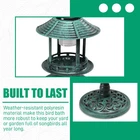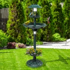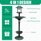 Introductions: Enhance your garden with the charm and functionality of this Outdoor Solar Lighted Pedestal Bird Bath Resin Fountain. Featuring a unique 4-in-1 design, this vintage-inspired birdbath combines a bird feeder, dual solar-powered lamps, a birdbath, and a planter, creating a sanctuary for birds while elevating your outdoor decor. With intricate artistic details, eco-friendly solar lighting, and durable weather-resistant construction, this birdbath is both a practical and elegant addition to any yard, patio, or garden. Perfect for attracting feathered friends and beautifying your space, it's a must-have for nature lovers and garden enthusiasts. Features: 1. Versatile 4-in-1 Design: This multifunctional piece features a charming bird feeder with a built-in solar lamp at the top, a middle birdbath for bathing and drinking, another solar lamp for nighttime illumination, and a planter for showcasing vibrant flowers or greenery. 2. Eco-Friendly Solar Lamps: Dual solar lamps automatically charge during the day and provide a soft, ambient glow at night, ensuring your garden stays beautiful and functional after sunset without needing additional wiring or batteries. 3. Artistic Vintage Accents: The intricate hollow patterns on the base and vintage finish bring a touch of sophistication to your yard, creating an elegant focal point that complements any outdoor decor. 4. Durable Weather-Resistant Construction: Made from high-quality polyresin, this birdbath is designed to withstand harsh outdoor conditions, ensuring long-lasting use while retaining its aesthetic appeal. 5. Perfect Gift for Nature Enthusiasts: A thoughtful present for bird lovers and gardeners, this birdbath encourages wildlife visits, promotes a healthy lawn, and offers hours of enjoyment for those who love spending time in their outdoor spaces. Specifications: 1. Overall Dimensions: (16 x 16 x 45) in / (40.6 x 40.6 x 114.3) cm 2. Birdbath Basin Diameter: 16 in / 40.6 cm 3. Material: Weather-Resistant Polyresin 4. Net Weight: 5.5 lbs / 2.5 kg Package Includes: 1 x Bird Bath