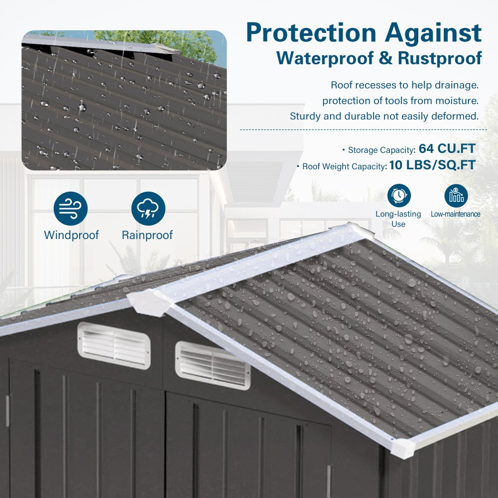Key Specifications Specification Details Assembled Dimensions 60.30" L × 35.10" W × 72.50" H (5X3 FT) Product Weight 63.30 LBS Package Dimensions 65.60" L × 24.50" W × 3.80" H Package Weight 71.00 LBS Material Prepainted Galvanized Steel Color Gray Warranty 1-Year Warranty Return Policy 30-Day Free Return Why Choose Our Metal Storage Shed? ✅ Perfect Size for Efficient Storage Measuring 5X3 FT (60.30" L × 35.10" W × 72.50" H), this compact storage shed fits perfectly in balcony corners, garden edges, or backyard nooks without taking up too much space. It easily accommodates garden tools (shovels, rakes, hoses), sports equipment (bikes, balls, rackets), and daily sundries. Customize the internal space with shelves and hooks (not included) for organized, categorized storage—keep your outdoor area tidy and clutter-free! ✅ Premium Metal Construction for Long-Term Use Made of high-grade prepainted galvanized steel with multiple anti-rust treatments, this shed is built to withstand harsh outdoor conditions. Features a sealed waterproof peaked roof and wind-resistant structure, ensuring your items stay dry and safe even in rain, snow, or strong winds. Compared to wooden or plastic sheds, our metal shed offers superior strength and durability—no deformation, cracking, or fading, and minimal maintenance required. Save time and money with a reliable storage solution that lasts for years! ✅ Versatile for Multiple Outdoor Scenarios More than just a storage shed! It can be easily transformed into a temporary tool workshop, a small outdoor studio, or even a cozy pet house. Ideal for family gardening, outdoor leisure, and daily storage needs, maximizing your outdoor space utilization. Whether you need to store tools, bikes, or pet supplies, this shed has you covered. ✅ Easy Assembly & Secure Lockable Design Modular design with complete accessories and detailed图文 instructions (easy to follow, no professional experience needed). Two people can finish assembly quickly without special tools. Equipped with a lockable door (lock not included) for easy access to large items and secure storage—keep your valuables safe from theft or damage. ✅ Stylish Appearance & Thoughtful Details Sleek modern design with classic gray color effortlessly blends with any outdoor decor (garden, backyard, patio, balcony). Bottom ventilation holes prevent moisture and odors buildup, keeping the internal space dry and fresh. Combines practicality with aesthetics—functional and visually appealing! Warranty & Return Policy We stand behind the quality of our products! Enjoy a 1-Year Warranty against manufacturing defects. If you're not completely satisfied with your purchase, take advantage of our 30-Day Free Return Policy —no questions asked, hassle-free returns. Shop with confidence! Package Includes 1 × 5X3 FT Metal Storage Shed (All Parts Included) 1 × Detailed Assembly Manual All Necessary Hardware Don't Miss Out! Upgrade Your Outdoor Storage Today with Our Durable, Stylish Metal Shed—Backed by 1-Year Warranty and 30-Day Free Return!