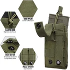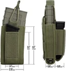 Product Description: 1. Molle Compatible On the back are MOLLE compatible straps that can lock it into place on your chest rig, assault vest, plate carrier, backpack, soft gun case or other gear with MOLLE webbing. Slap on some morale patches for that edge. 2. Front Pouch Fits and secures most pistol magazines, it also can be used as a flashlight, knife, multi-tool holster, OC spray, etc. 3. Elastic Cord Secured in place by an elastic band, easy to adjust elastic band to keep article reaches the most stable state. 4. Open-Top Kangaroo Mag Pouch Hold one rifle magazine and one pistol magazine Rifle mag pouch with bungee cord fits M4 M16 AR AK mags etc. Pistol mag pouch fits 9mm .30 .38 .45 Pistol mags, like GLOCK17 M1911 P226, etc. Specification: 1. Weight: 70g 2. Material: 500D Nylon 3. Size: 5.5"*2.75"*2"/15x7x5cm (H*W*T) 4. Color: Black/Khaki/Army Green/CP/BCP Package Include: 1x Double Decker Mag Pouch Warm Tips Only a kangaroo mag pouch, anything else is not included.