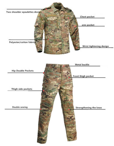 Store category Sign Up Now ! You may also like Outdoor US Military Camo Suit Men Multi-Pocket Training Tactical Field Operation Product Description Package includes: 1 Jacket+pants(no other accessories) Note: 1.Actual fabric colors may vary slightly from online colors due to variations in screen color settings. 2.Please check the measurement chart carefully before you buy the item.To be safe,Please measure one of your own Shirt and pants to make comparison with ours, so as to select a correct size.Please measure yourself before ordering,contact us if you are not sure. Features: 100% brand new & Top quality. Breathe freely,quick-dry. Constructed by High Quality Cotton and Polyester material, wearable and comfortable. BDU tactical uniform shirt & pants. Skin-friendly comfortable, scratch-resistant wear-resistant, breathable comfortable, self-cultivation decent The jacket and trousers are multi-pocket Applicable occasions: outdoor combat, work, hunting, camping, field work, hiking, climbing, shooting sports Size Chart:1 inch=2.54cm Size Chart(CM) Jacket Pants Tag Size Sleeve Shoulder Chest Hem Length Waist Hip S 62 45 54 52 103 42 102 M 63 46 56 54 105 44 106 L 64 47 58 56 107 46 110 XL 65 48 60 58 109 48 114 2XL 66 49 62 60 111 50 118 3XL 67 50 64 62 113 52 120 SIZE ERROR: 1-2CM error as size was measured by hand. Size Chart(Inch) Jacket Pants Tag Size Sleeve Shoulder Chest Hem Length Waist Hip S 24.4 17.7 21.3 20.5 40.6 16.5 40.2 M 24.8 18.1 22.0 21.3 41.3 17.3 41.7 L 25.2 18.5 22.8 22.0 42.1 18.1 43.3 XL 25.6 18.9 23.6 22.8 42.9 18.9 44.9 2XL 26.0 19.3 24.4 23.6 43.7 19.7 46.5 3XL 26.4 19.7 25.2 24.4 44.5 20.5 47.2 SIZE ERROR: ±1 INCH error as size was measured by hand. Measurements shown in the size chart refer to item measurements, not body. Please refer to the detailed size information for choosing right size. Payment Policy Shipment Returns Contact us Feedback Payment Policy We accept PayPal Only! Paypal accepts most methods of payments. Below are methods of payments that you may use threw paypal to pay for the order. • PayPal Balance • Instant transfer from your bank account (if eligible) • PayPal Credit (Bill Me Later, PayPal Extras Card, or PayPal Smart Connect) • Debit card • Credit card • eCheck (a delayed transfer from your bank account - may result in significantly slower shipping by seller) Shipment 1.All items will be shipped to your PayPal address. Please update your latest address when you check out. Item will be posted within 24-48 hours by china post AirMail after the payment is cleared. (USA,Canada,United Kingdom,Australia,Germany,Italy,Spain by SpeedPAK delivery,Tracking number will be added to eBay when available.It takes 7-15 working days.) 2.Shipping time is 7-20 business days to most of countries. Please contact us via eBay Message if you have NOT received item in 30 days,we will check it with post office. 3.If you need other expedited shipping,please contact us firstly as you may be required to pay for the extra shipping cost.SERVICE TRANSIT TIME is provided by the carrier and excludes weekends and holidays. Transit times may vary,particularly during the holiday season. There might be occasional delay on international shipping due to customs check, bad weather, flight delay.If the item is delayed please do contact us first and we will check it immediately. Returns 1.If for some reason you are not satisfied with our service or product,you can send the original package back within 3 days, and we’ll FULL refund to you after we get the package. 2.Any problems,pls try to contact us first.Do please contact us in advance before leaving any neutral or negative feedback. We will try our utmost to help you solve the problem. Contact us We attach great importance to your satisfaction .PLS feel free to contact us if anything happens and makes you feel unsatisfied. We ensure you that we will do what we can to solve any problem. Feedback 1. Your satisfaction and positive feedback is very important to us. Please take a few seconds to leave positive feedback (5 stars) if you are satisfied with our items and services. 2. Please contact us before leaving neutral(3 stars) or negative(1-2 stars) feedback. Negative feedback does not solve anything. We are always willing to work things out !