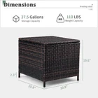 Introductions: Enhance your outdoor space with the Outdoor PE Wicker Side Table with Storage. This versatile piece serves as both a stylish side table and a convenient storage container, offering a practical solution for organizing furniture covers, toys, gardening tools, and more. It features an all-weather handwoven PE rattan design that adds a of elegance to any patio or garden. The sturdy steel frame ensures durability and stability, while the 27-gallon storage capacity provides ample space for your belongings. Features: 1. Spacious Storage: With a generous 27-gallon capacity, this side table offers ample storage space for furniture covers, toys, gardening tools, and other items. 2. Versatile Design: This multipurpose piece serves as both a convenient side table and a practical storage container, offering dual functionality. 3. All-Weather PE Rattan: The exquisite handwoven PE rattan construction is designed to withstand various weather conditions, ensuring-lasting durability. 4. Sturdy Steel Frame: The robust steel frame provides stability and support, making this side table reliable for everyday use. 5. Stylish and Elegant: The brown gradient rattan adds a of sophistication to your outdoor decor, elevating the aesthetic appeal of your patio or garden. Specifications: 1. Material: PE Rattan, Iron, PVC Board 2. Color: Brown Gradient Rattan 3. Overall Dimensions: (20.9 x 20.9 x 19.7)" / (53 x 53 x 50) cm 4. Storage Dimensions: (20.9 x 20.9 x 14.6)" / (53 x 53 x 37) cm 5. Side Panel Height from Ground: 2.4" / 6 cm 6. Storage Capacity: 27 Gallon 7. Weight Capacity: 112 lbs / 50 kg 8. Net Weight: 15.9 lbs / 7.2 kg Package Includes: 1 x Side Table with Lid 1 x Set of Hardware Assembly 1 x English User Manual