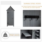 Specification: Material Wood & Asphalt Color Gray Color Weight 49 lbs Wood Thickness 0.36" /0.48" Overall size 30.3"L X 21.3"W X 70.5"H(including the roof side) Window Door Size 10.4"L x 6.9"W Bottom Floor 25.6"L x 18.11"W Door Size 20.3"L x 48.2"W Package Contents 1 x Garden Shed 1 x Instruction [Peefect Storage Shed]Hide the messy garden tools and not taking up too much space. When you lack space to store things, it works perfectly for storing mower, garden hose, outdoor tool and watering tool. (Dimension: 25.6" x 18.1" x 70.5") [Spacious Storage Space]Our outdoor storage shed has ample storage space which can hold a considerable number of tools and equipment. Coming with 3 compartments, both short tools like watering can and tools like spade can be stored well in place. [Waterproof Roof]The sloping asphalt roof is not only waterproof but also avoids water accumulation, making the garden tool storage shed longer service life outdoors. [Solid Fir Wood Frame]Made of solid fir wood, this storage shed is sturdy and durable. The whole frame is weather resistant and can withstand the test of being outdoors for years. The door is reinforced by extra wood board to enhance the durability. -term Durability]The outdoor storage tool cabinet has a raised bottom, so don't worry about the uneven ground.In addition, there is an extra hook on the side of the tool room, which can put some shovels, brooms and other items that need to be hung, and sort them for storage. [Considerate Delicate Shape]Since there is a latch on the door, you only need to close and lock the door to prevent the tool from falling.Tucked inside the roof is a small storage compartment with a door for easy access.