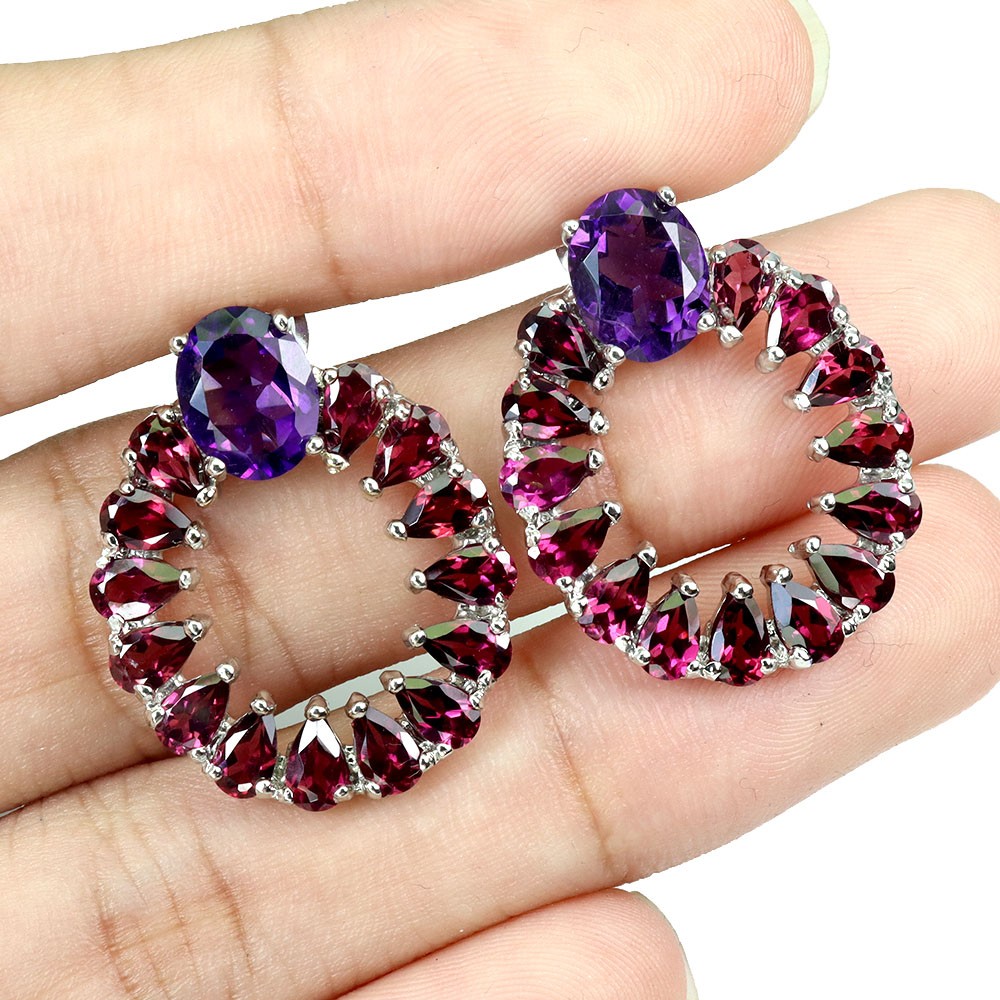 $ 17.96925 Silver Oval Gemstone Earrings with Amethyst Sapphire Garnet
