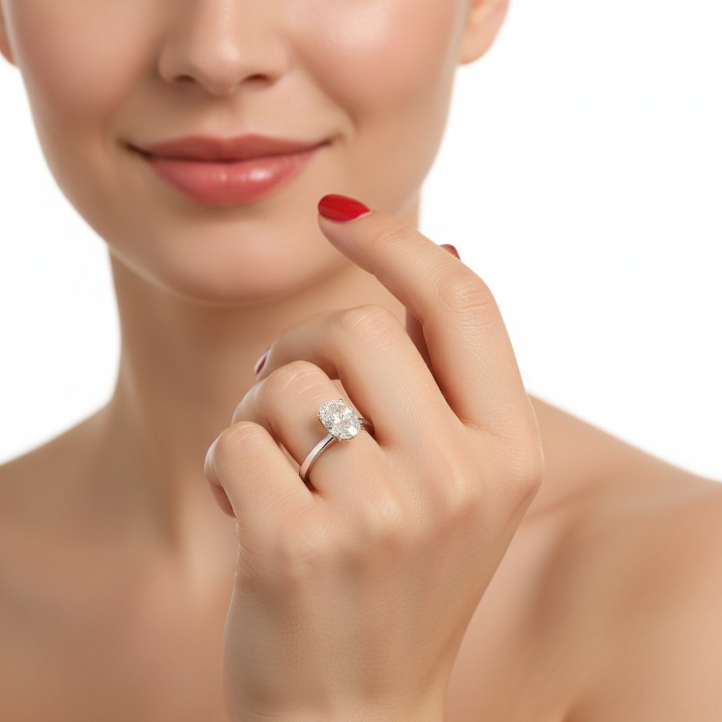 Discover the elegant Engagement Ring, featuring the sparkling Diamond, nestled in a finest white gold on silver hallmarked band. The simplicity of the round solitaire stone against the cool toned platinum band ensures the ring will never go out of style. A classic for a reason, a solitaire stone is always the most popular – ensuring you can propose with confidence that your partner will love this symbol of your partnership. White Gold Filled on silver is a long lasting and economical way to enjoy without the huge price tag and is usually considered a lifetime piece of jewellery when cared for accordingly. Perfect for weddings, engagement and more! Band Width: 2.6mm Hallmarked: Yes