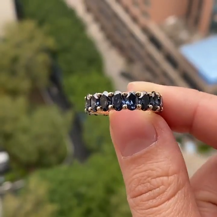 Oval Cut Eternity Band Blue Color Moissanite Ring ๐ Available Metals: A) 5X Platinum Vermeil, B) Solid 10K Gold, C) Solid 14K Gold, D) Solid 18K Gold, E) Solid 950 Platinum. โ HIGHEST QUALITY Certified White Gold, Rose Gold, Yellow Gold & 950 Platinum. (Not Trash). ๐ Ring Size: 2,3,4,5,6,7,8,9,10,11,12,13,14,15,16 and anything between these ring sizes available. It could be 1/4, 1/2, or 3/4. We Fit It to your Exact Finger Size no matter what size you want. ๐ Main Stone: HARDEST Quality VVS GRA Certified Hand Cut Moissanite (Pass Diamond Testers) โจ Side Stones: Premium Quality VVS Moissanite. (Pass Diamond Testers) ๐ Certified: GRA - GRC ๐ Polish: Excellent Polish. Shiny & Clean for Maximizing Sparkles. โฆ Cut: Hand cut Excellent cut & Symmetry with Crisp & Sharp Edges/Corners. ____________________ ๐ 100% Handmade with GORGEOUS & Accurate Details. Itโs an Art, not only a Valuable Material. ๐ 60 Days Money Back Guarantee for Any Reason even if you don't Fall In Love with it. ๐คฏ FREE LIFETIME Main Stone Warranty & Side Stone Replacement. (No Color Change). ๐ FREE LIFETIME Jewelry Cleaning & Re-plating. ๐ Hypoallergenic. Skin Friendly. Doesnโt cause any type of Allergies. ๐ Customizable with/to Your Favorite Stone/Jewelry Type & Shape. ๐ FREE STUNNING Random GIFTS On Every Order (we sell them for +$200 up to over +$700). ๐ฅฐ Amazing Wooden Gift Boxes for Your Main Jewel & its Gifts. ๐ฅณ Gift Wrapping Available (we wrap with no tags or receipts, ready to present). ๐คฉ VIP Customer Service to Make Your Dreams Come True in the Most Fantastic Way. ๐ FREE SUPER FAST FedEx Express Shipping. ____________________ ๐โ + Our 5X Platinum Vermeil: Platinum is 9.4 times RARER & slightly more DURABLE than gold. Rings with platinum end up more EXPENSIVE than gold because the DENSITY of platinum is a lot HIGHER and the QUALITY is EXTREMELY PURER. Rings THICKLY plated FIVE TIMES with platinum offer MUCH STRONGER PROTECTION against wear and scratches than gold plated jewelry. Therefore they LAST the LONGEST while giving you a SHINY LOOK ALL THE TIME. ๐โ + Our Rare Stone Quality: Here you have the NATURAL looking color of the diamonds in a RARE size with extraordinary VVS1 clarityโฆ Weโre offering the GREATEST QUALITY and VALUE at the BEST PRICE with this design by using very SPECIAL types of GRA Certified Moissanite stones. Natural diamonds in this color, clarity and size are super rare and very hard to find. Some of them easily cost over $10,000 per carat. (please message me for natural diamonds like this color, size and shape so I can give you the accurate price based on your preferences) ____________________ ๐ข๐๐ FREE FAST EXPRESS SHIPPING Processing + Shipping = Receiving Time PROCESSING: Only 1 available. This ring will be shipped within 48 hours. (Other sizes require customization for 2-3 weeks. ) SHIPPING: 2-6 days via FedEx Express for FREE โ Youโll get updated with the tracking code, once your package is shipped. โ We ship with insured FedEx only which is very secure. โ An adult signature is required at the time of delivery. _____________________ โ๐๐ CUSTOMIZATION/PERSONALIZATION: Custom orders with me are SUPER EASY & COMFORTABLE, no matter if youโve never done it before or youโve done lots of them. ๐ค I break down everything into small steps. And we go through the steps one by one together. On each step, youโll get to pick or guide me from the options I represent. ๐ Once we get to the end, your dream comes true. ๐คฉ๐ Because every single detail is just exactly what you want. ๐๐ ๐จ HOW TO DESIGN YOUR RING: A โ Send me some/one image similar to your idea. Or tell me whatโs your favorite shank, profile or stone? So I can show you some options to choose from. B โ Next, I will start designing it right away. Iโll send you some screen shots from what I designed. We can adjust any part of it together, until itโs exactly the way you want it to be. C โ After we get to the ideal conclusion, Iโll render several Ultra High Quality 3D images and a 4K video, so you see what the end result is gonna look like in reality. D โ The moment you approve everything, we start making it. Once itโs finished, weโll ship it the same day. + 3D IMAGE SAMPLES: Before you order yours, you can ask me for some samples of the 3D rendered images and videos. Youโre gonna absolutely love the quality, because they look like real rings. ๐คฉ๐ + Designing your dream ring with me is gonna be a fantastic experience. While you just sit and order, youโll watch how I take care of everything from your idea to the end product in the SIMPLEST & GREATEST way possible.โ โ------------ ๐ AVAILABLE GEMS: All stones are available - Colorless & Colorful Moissanite or Simulated Moissanite. Natural & Lab Grown Diamonds in Colorless or Colorful. Natural and Lab made Emerald, Ruby, Sapphire, Amethyst, etc. Just ask! ๐ฅ AVAILABLE METALS: All metals are available - 925 Sterling Silver, 5X Platinum Vermeil, 9K Solid Gold, 10K Solid Gold,14K Solid Gold, 18K Solid Gold (in Rose, White or Yellow), Platinum 950. ๐ AVAILABLE MATCHING PIECES: We can make matching pieces for this product. Engagement Rings, Bridal Sets, Wedding Bands, Earrings, Studs, Hoops, Bracelets, Bangles, Necklaces, Pendants, and anything youโd dream of. We can design all to set with this item. ๐จ๐จ๐ง๐ฆ AVAILABLE OTHER JEWELRY: We make jewelry as per occasion and celebration like birthdays, birth months, anniversaries, motherโs day, valentine's day, fatherโs day, memorials, thanksgiving, zodiac signs, graduation days, and many more per your request. ____________________ โโโโโ 5 STAR PRISTINE PROMISES: โฆ๏ธ 100% Satisfaction Guaranteed โฆ๏ธ Ethically Sourced โฆ๏ธ FREE Lifetime Ring Resizing โฆ๏ธ FREE Complimentary ENGRAVING โฆ๏ธ 100% Conflict Free Materials 