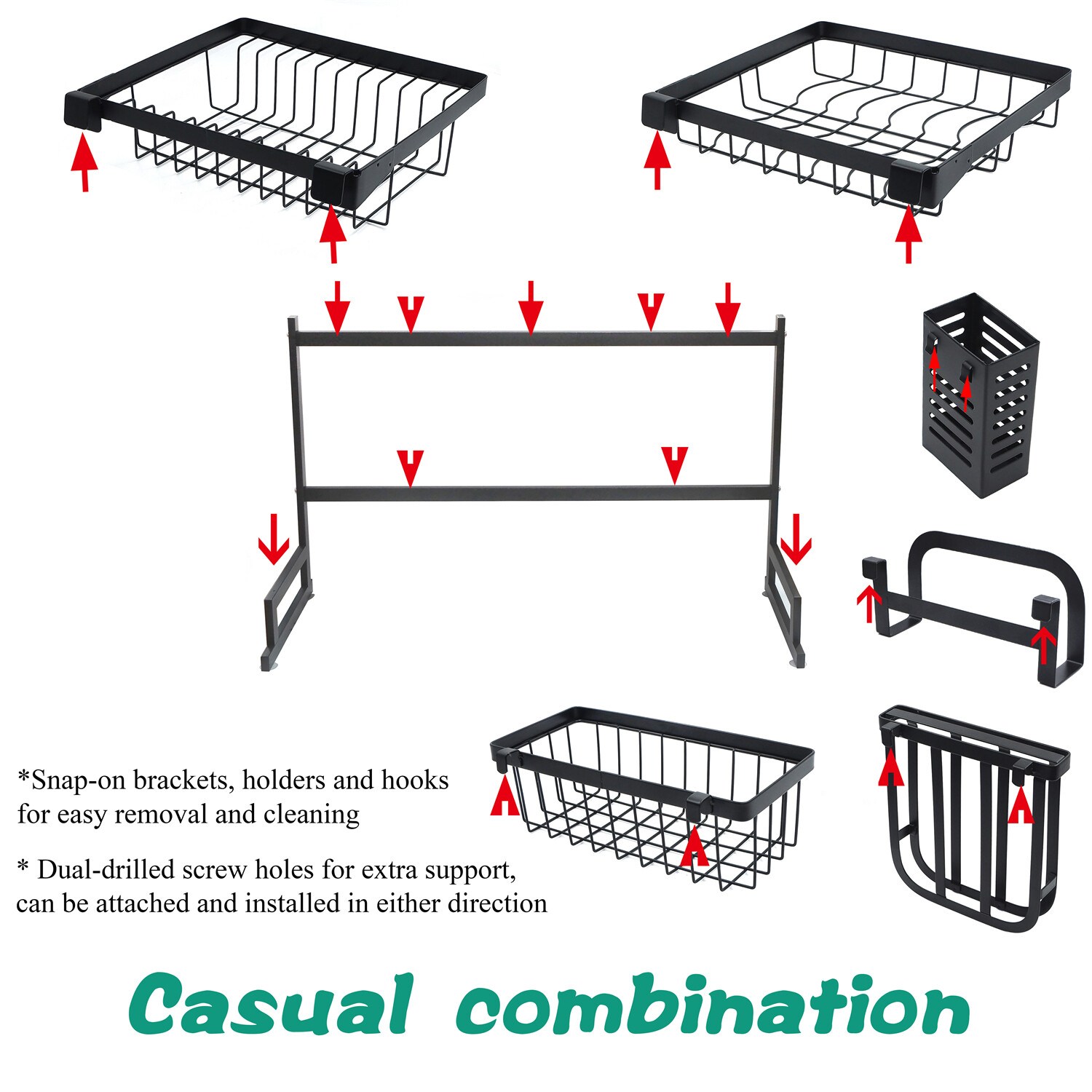 Description: Material: Stainless steel 304 stainless steel material, no rusting, long-lasting durability Saves tons of space and time by making it easier to access utensils and supplies, making your kitchen more clean and tidy Easy to assemble and very sturdy and durable to hold the weight of dishes High-quality stainless steel inner, environmental piano paint outer Bottom reinforcement U-shaped structure, more stable Snap-on structure for easy removal, convenient for daily cleaning Bearing 60 pounds, stable and not leaning forward The anti-slip suction cup at the bottom for reinforcement stability